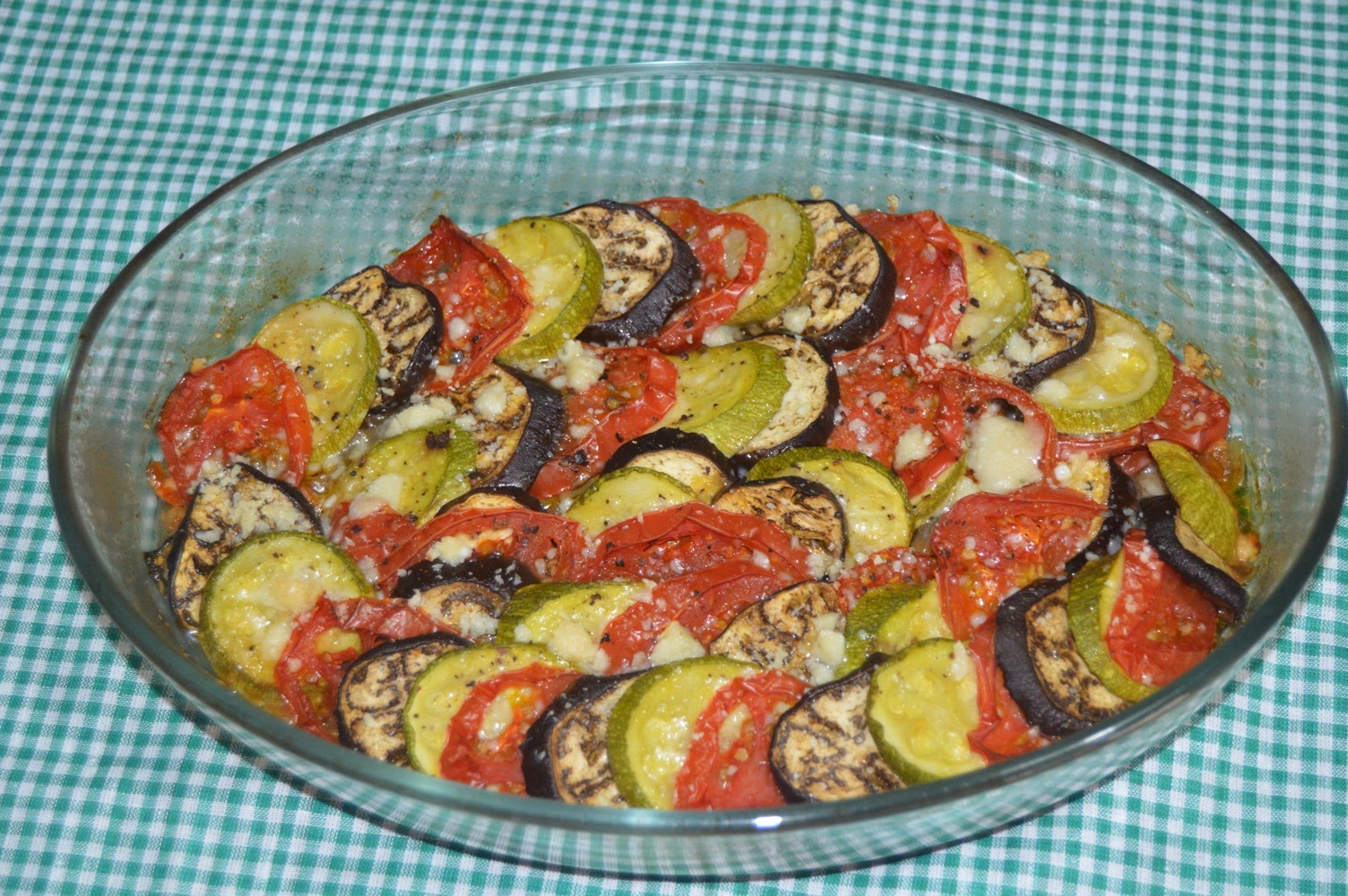 - Cover the plate with aluminum foil and put it in a preheated oven (200° C) for half an hour or until the zucchini and eggplant are well done.